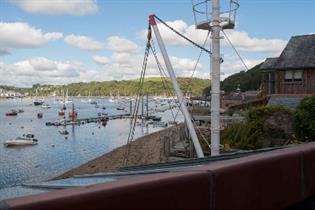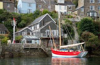 By mainland train to Liskeard then 20 minute taxi journey. Alternatively mainland train to Par then regular bus service to Fowey. Foot ferry to Polruan.