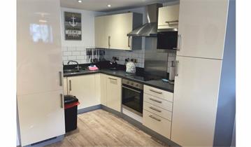 Open Plan Kitchen/Lounge/Diner: Contains Electric hob and oven, microwave, toaster, electric kettle, fridge/freezer, dishwasher, Smart TV, dining table with chairs, settee, coffee table, TV Table with books and games, various lighting options, Tea towel and hand washing-up equipment provided.